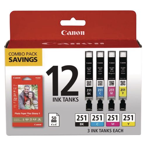 6513B010 (CLI-251) Ink/Paper Combo, Black/Cyan/Magenta/Yellow
