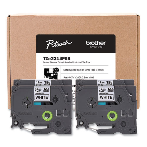 TZe Series Standard Adhesive Laminated Labeling Tape, 0.5", Black on White, 4/Pack