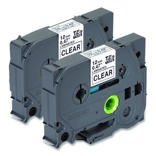 TZe Standard Adhesive Laminated Labeling Tapes, 0.47" x 26.2 ft, Black on Clear, 2/Pack