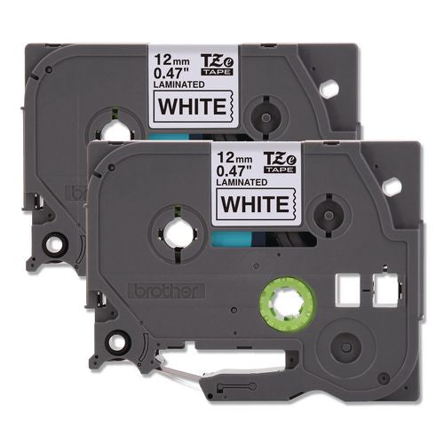 TZe Standard Adhesive Laminated Labeling Tapes, 0.47" x 26.2 ft, Black on White, 2/Pack